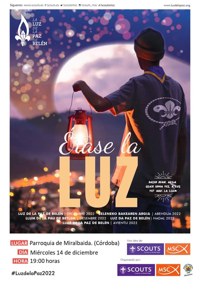 Volvemos un año mas a recibir la Luz de la Paz de Belén y este año el reparto de toda Andalucía será en nuestra ciudad concretamente en la Parroquia del Inmaculado Corazón de María.